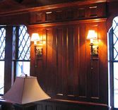 This traditional English library was designed and built for the previous home of president, Woodrow Wilson, c 1895. Solid, quartered oak wood wall panels surround the window and doors, including 24" deep paneled window jambs & heads. The windows are framed with arched beams that rest on custom corbels. Bookcases, cabinets and a fireplace surround the rest of the room which move in and out with the help of refined transitional moldings. Above the wall paneling and cabinets is a stepped out soffit, faced with small repetitive square panels that lead to the facier of the coffered beam & paneled ceiling. The cabinets transition into the soffit with a 2" cove molding as does the ceiling beam to the ceiling panels. Not seen are the cabinet with beveled glass doors that protect the owners prized books. This traditional library is entirely quartered sawn oak with a deep toned, multi step satin lacquer finish.installed on site, pre-finished. All panels and molding are glued in place. There are no visual means of attachment to be seen. A few words about Tailored Rooms… Meticulously detailed, a 'Tailored Room' is your special place to enjoy. I call these rooms, 'tailored', because of the exact custom fit and the amount of attention to every detail that goes into every square inch of these very personal rooms. Whether it's a library, office, bar, game room, family room, media room or bedroom. The walls, windows, jambs, doors, floor, ceiling are brought together with the cabinets, paneling and transitional moldings to present a completely, "Tailored Room". From contemporary to traditional, eclectic or theme, whatever your design period or style tastes may be, we'll design, build and install, the room for you. For additional information & photographs of this project and others, please visit my website.