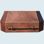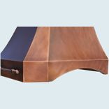 #4085 This custom copper hood is made from the purest copper available, and has the following features: - French Country style - Smooth body - Extra tall integral stack - Arched bottom band - Copper pot rails on sides - Halogen lights, dimmers, filters, & fan control - Antiqued with our "Medium Patina" finish My company, Handcrafted Metal, specializes in building fully-welded custom hoods, sinks, and countertops. We can make them out of copper, zinc, bronze, pewter, and stainless steel. We can make them to perfectly accommodate your kitchen, no matter how complicated. With us you can fully customize the size and features according to your vision, and the price will be adjusted to your specifications. We apply superior craftsmanship skills to everything we do, and we meticulously check every detail before shipping. Each original piece is truly a high-end union of form and function. Please visit our website for more information.