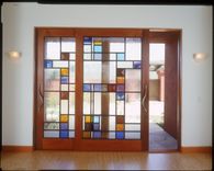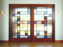 FSC Mahogany and cherry stained Wenge 2-way Sliding Door Colored Glass with Mahogany divisions Mahogany Door Jambs Stainless steel hardware