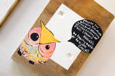 Owl in pink and yellow - quote from Max Fischer from Wes Anderson's Rushmore - quote rainbow owl on old fence wood Custom painting just for you- shown here is an example of your painting- you will get a ONE OF A KIND custom piece made just for you in one week or less… Please specify if you would like a different color scheme or other minor alterations, or your custom art will look as close to this example as I can. Colors, sizes and shapes my vary ever so slightly, as is the nature of custom work. Please convo me with any questions before you order. Owl in peachy pink, lemon yellow and rainbow colors says: "Maybe I'm Spending too much time starting up clubs and putting on plays - I should probably be trying harder to score chicks" Max Fischer said in in Wes Anderson's amazing movie: "Rushmore" Size: (approximately) 3.5 x 5.0 inches Medium: Acrylic on wood Artist: (me) Kelly Cook Location: Colorado From a "Wise Owl" series I created for this fall each hand painted ORIGINAL owl painting is done on recycled fence wood These beautiful, naturally weathered pieces make a lovely addition to a nursery, dorm room, office, guest room and they look great in a collection. Ask me about a deal on 3 or more owls- Put them all together for a sweet display, or buy three and share with friends. Great stocking stuffer, gift to ship to a friend, birthday present, shower gift… This listing is for ONE original owl painting Have a favorite movie quote, inspirational saying, verse, poem or song lyric? Design and order a custom piece your choice of owl color scheme and quote ! Convo me to order :)
