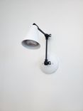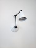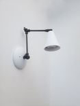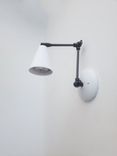 Black & White Adjustable Wall Light - Articulated Industrial Sconce - Mid Century - Modern - Kitchen Shelves Boom Light - Bathroom Vanity If you are looking for unique statement lighting for your home, look no further! This wall light is perfect whether used by the bed, over the sink, or above bookcases, this highest-quality cone shade wall lamp will direct the light just where you want it with a pivoting shade, double-jointed arms, and a variable extension. No electrical box? Not a problem, this light can be made into a plug in wall sconce that can be mounted anywhere, contact me for more info. Compatible with medium base bulbs (E26) including Edison style, LED, Halogen and CFL (pictured with MR16 LED bulb). Pictured bulb is included at no additional cost for a limited time only. Finish shown is matte white and matte black, several other finishes, materials, shades and combinations available upon request, feel free to request a custom order. Approximate Fixture Measurements: - Base: 5 inches - Shade Size: 4 H X 3-3/8 W inches - Height: 10 inches - Total Projection: About 12 inches (as pictured, from the wall to the outer side of the fixture) - These measurements can be modified to fit your requirements with a custom order *Note that the arms' length can be custom sized for you if you require it. Technical Specifications: - Voltage: 110-240V - Max Wattage: 60 watts/socket (recommended) - Socket Type: Medium Base (E26) - Dimmable: Yes (when using dimmable bulbs with a respective wall dimmer) - UL Rated/CE certified Electrical Components: Yes - Material: Brass and steel Handmade in the U.S.A. with top quality components. Contact me if you have any questions or custom requests. Any imperfections present on the lamp are inherent to the handmade nature of this light. *Due to variations on computer monitor settings, the color of the lamp may vary from one computer to another. Note: As with any handmade item, this lamp should be handled with care, this will ensure many years of enjoyment. modern accent light, modern lighting, plug in wall sconce, bathroom vanity, industrial lighting, light fixture, bathroom sconce, wall sconce light, vanity lights, modern lighting fixture, kitchen light, flush ceiling light, home lighting, contemporary light, mid century lighting, white wall lighting, wall sconces, wall sconce light black, swinging light, adjustable sconce