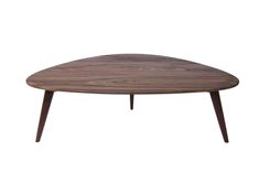 The Oliver Coffee Table is the perfect modern accent piece for tight places. Made of solid walnut and featuring mortise and tenon joinery and finely sculpted legs, this organic triangular table is a timeless classic! Other wood species are available. DIMENSION: - 48" Long x 21" Wide x 16" Tall FEATURES - Mid century modern inspired coffee table - Solid walnut construction - Also available in cherry - Features mortise, tenon joinery and finely sculpted legs - Handmade to order SHIPPING - Made by Mark Palmquist of Mark Palmquist Design in Frederick, MD - Ships in 2 weeks - Have one made for you, place an order today