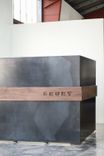 This reception desk in steel and walnut has a 5' x 7' footprint.