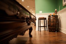 We create a one-of-a-kind collection of custom designed, LED-lit, charred whiskey barrel tables. Each of our tables are custom-designed Kentucky whiskey barrels equipped with LED lighting to accentuate the barrel's striking charred interior. Table-topped with a tempered glass, these tables can function as the focal point of a social gathering, or blend seamlessly into the background. Custom glass etching is available upon request to further enhance the uniqueness of this gorgeous piece.Perfect for living rooms, wine cellars, bars, and restaurants.