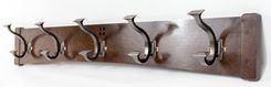 These Arts and Crafts / Mission coat & hat racks are available in standard sizes from 14 to 60 inches with either cast iron acorn hooks, Shaker peg or hooks of your specification. There are two basic standard styles - with or without end stiles. The design is our signature four-square and arch that is incorporated in most of our designs. The racks are constructed of select quartersawn white oak or cherry. They are mounted to the wall using two vertical screw slots cut into the back. Drywall mounting hardware, marking pins to aid installation, and installation instructions are included. We can produce the racks in any desired dimension or style using our standard hooks or hooks that you specify. They may be provided in a light finish or our standard finish as shown in the photographs.