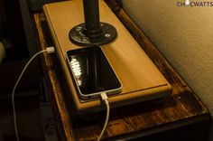 We made a set of industrial lights with built in USB hubs for a customer to feature in the open office work space. It was a huge so much fun to design something sleek , stylish and yet so functional. The USB port is powered by the same power source as the lamp and eliminates the need for additional wires going into the wall. We used high quality hemlock wood- stained and treated with a lovely finish, and painted the lamp itself bronze. The USB port was also painted to match the lamp base.