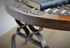 My blacksmith business makes various items from candle holders and wine racks to repurposing wood by incorporating it into my metal projects. Metal projects begin with round, square and flat steel bar stock or sheet metal. The metal is cut then forged into shape using hammer, anvil, vise and other blacksmithing tools.