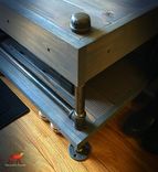 The Cornerstone Console is as rugged as it is stylish. A multifunctional piece that can transform to serve numerous purposes including: console, mini-bar, tv/components stand, bench, hall/entryway table. These configurations will be displayed in separate listings. Also, add-on pieces are currently in the design stage so make sure to keep checking back for updates! As shown (Entryway Bench): Made from hand selected premium pine (solid 4x4 top and 2x4 lower shelf), steel/iron gas pipe, and aspen (outer edges). The wood is finished with a visually stunning gray oil-based stain. The console, as shown, measures at 55"L x 19"W x 71"H. If requested, shorter/taller leg/middle pieces can be supplied to suite your unique needs! The Cornerstone Console is made to order and custom sizes and finishes are available!* Ready to deliver** or ship in 2-3 weeks. * Please message/email for details. ** Local delivery is available at $1/mile up to 100 mile radius from the 48083 zip code. Please message for details.