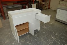 This intricately designed changing table is built for generations to come employing old world craftsmanship with an incredible attention to detail. Each solid wood drawer interior is fully painted with Zero VOC paint and is fitted with full extension under-mount drawer slides that close softly to the touch. The Changing Table is designed with removable rim for dresser conversion. The changing table top is removable and easily converts to an heirloom quality Dresser sure to be used for decades. Size: 44"W x 21"D X 36"H * Available in many different finishes * Please contact us for more information and exact shipping costs Made in America GREEN – Non Toxic, NO VOC (Volatile Organic Compound) water-based finishes Solid Ashwood and Ashwood Veneers Formaldehyde-free. No particleboard. No MDF. No synthetic woods. Classic Mid-Century Modern Individually built from start to finish by a highly skilled artisan Beautiful Hardware Heirloom quality of construction that can be used for generations to come