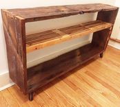 Made from reclaimed pine subfloor out of a factory renovation and pine lath from a plaster wall. It's perfect for knickknacks behind the couch or records in the den. Entirely hand made with traditional joinery. No metal fasteners anywhere in this piece 48" long x 27" high x 10" deep. Available now. Local pick ups and delivery are doable, and I will ship this anywhere at the customer's cost, so contact me if you need it shipped out. Thanks.